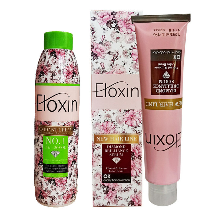 رنگ مو الوکسین شماره 6.1 حجم 120 میلی لیتر رنگ بلوند دودی تیره به همراه اکسیدان مدل 01 شش درصدی حجم 180 میلی لیتر